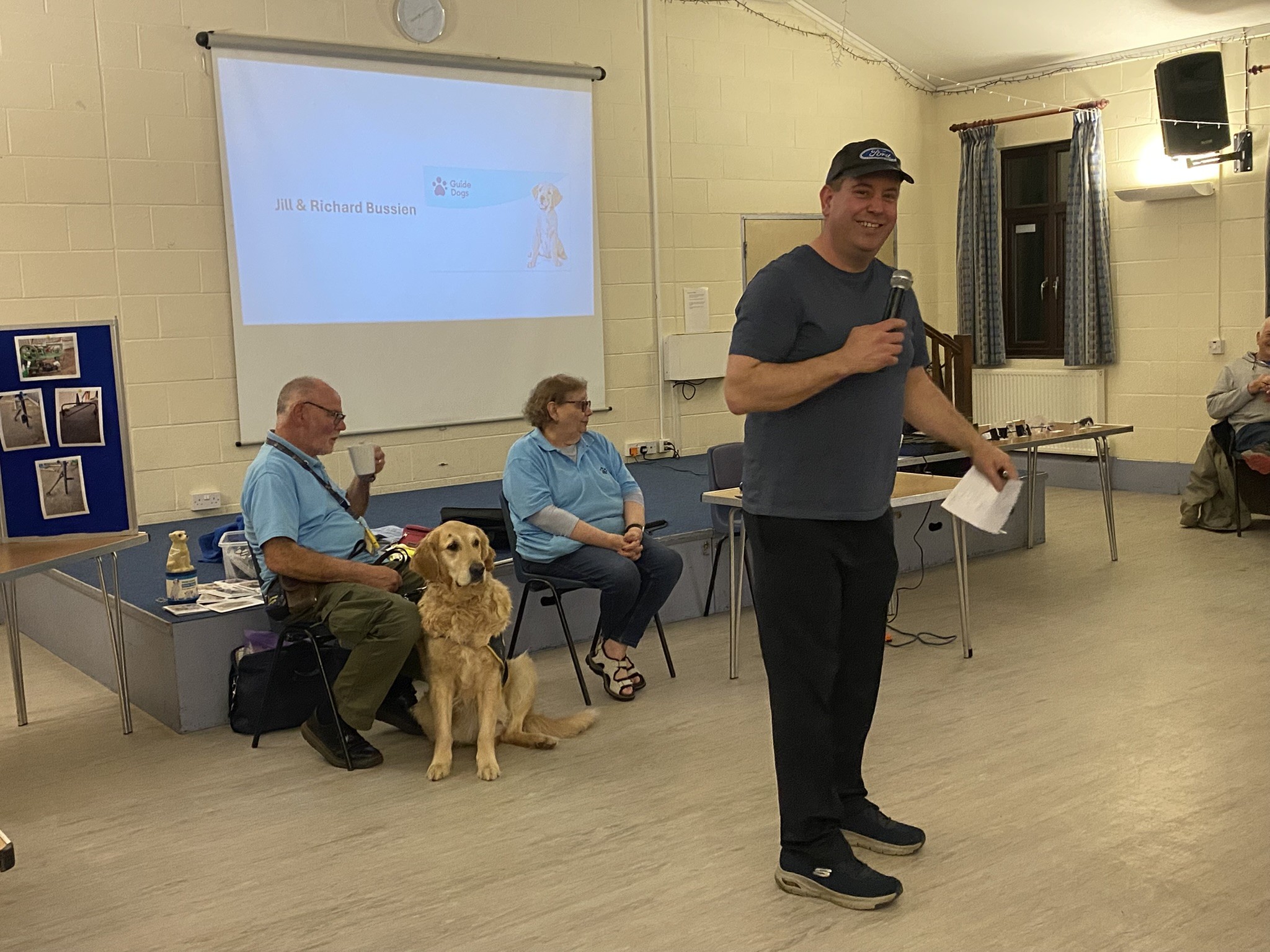 March’s social meeting was a very interesting presentation by the local area of the Guide Dogs charity, presented by Jill & Richard Bussien from Harleston, ably assisted by Vinnie. In their words, Vinnie completed his training but didn’t want to work, so was offered back to them and has taken up a new role as an ambassador dog. Puppies are bred in house, and transfer to a puppy trainer at 8 weeks old, and then transfer again to the training school at 18 months old. As one can imagine, the training is very involved, before the final matching and mutual training with the visually impaired person.